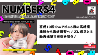 花咲親爺のナンバーズ4独自解析実践ブログ 花咲親爺のナンバーズ4予想|20260409|ニアピン精度は完成域「最後に必要なのは閃きと運」 ナンバーズ4予想2026年4月9日。ニアピン10回中6回の高精度状態から最終調整へ。ズレ修正と主軸再構築で当選を狙う。 花咲親爺のナンバーズ4独自解析実践ブログ