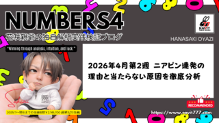 花咲親爺のナンバーズ4独自解析実践ブログ 花咲親爺のナンバーズ4予想|20260406-20260410|今週のまとめ|ニアピン連発と“ズレの正体” ナンバーズ4で直近12回中8回のニアピンという異常な精度。その理由と“当たらない原因”を徹底分析。2026年4月6日〜4月10日の結果から見えたズレの正体と、来週の改善戦略を公開する実践検証ブログ。 花咲親爺のナンバーズ4独自解析実践ブログ