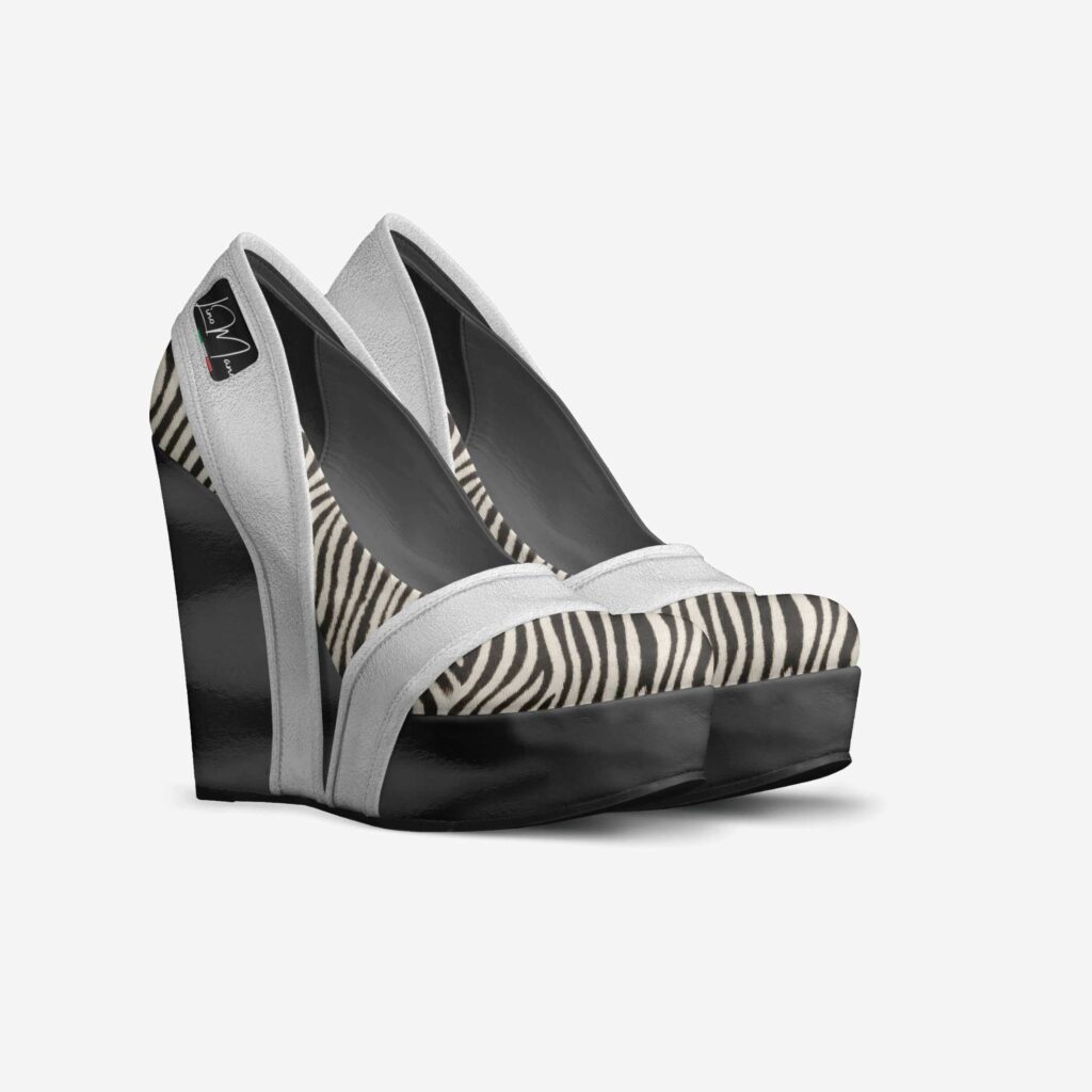 このプラットフォーム パンプは、オールドスクールなロンドンの雰囲気とパリのアバンギャルドを組み合わせたものです。側面にカスタマイズ可能なストライプを備えた素晴らしい構造。13cm(5インチ)のレザーウェッジパンプスは、注目を集めたいときに最適です。