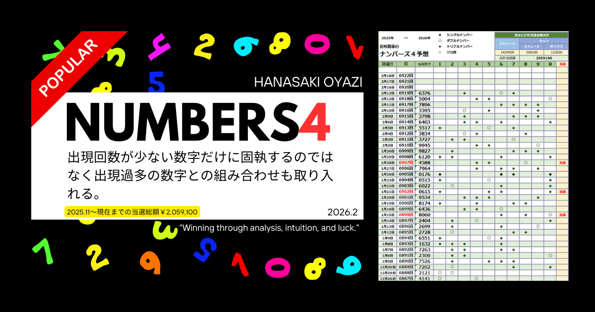ナンバーズ4の難しさと、ストレート狙いの宿命を痛感した一週間でした。