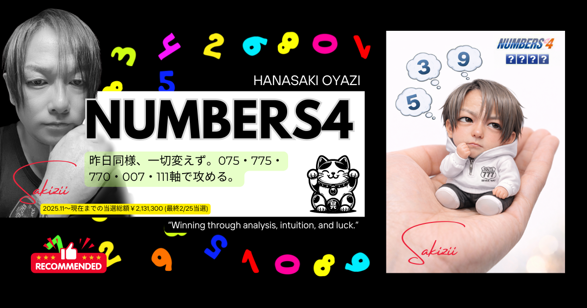 花咲親爺のナンバーズ4予想|20260303|主軸075・775継続でストレート狙い