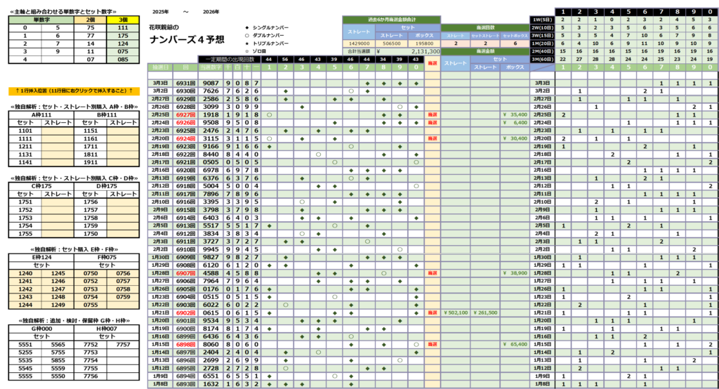 2026年3月4日のナンバーズ4予想です。