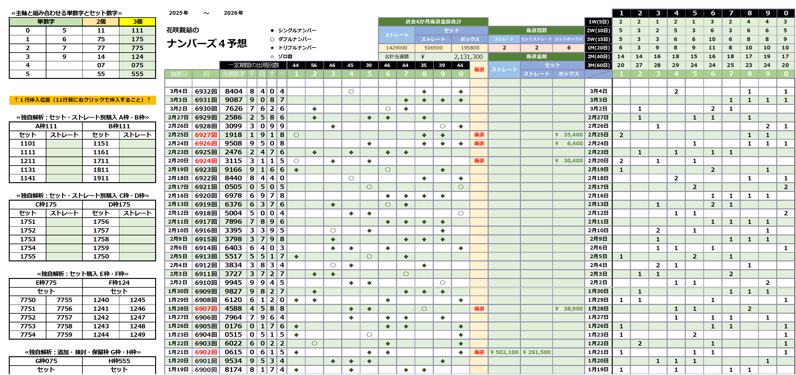 花咲親爺のナンバーズ4予想|20260305|大ハズレ歓迎・主軸継続で連続当選を狙う