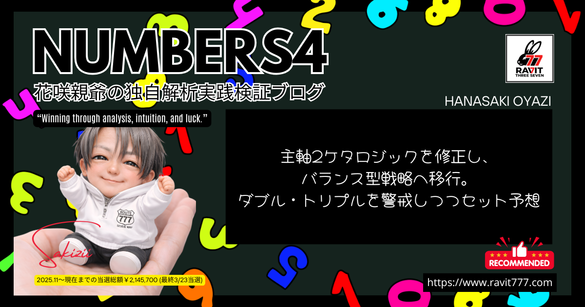いつも「花咲親爺のナンバーズ4独自解析実践検証ブログ」をご覧いただきありがとうございます。